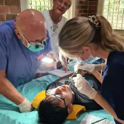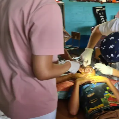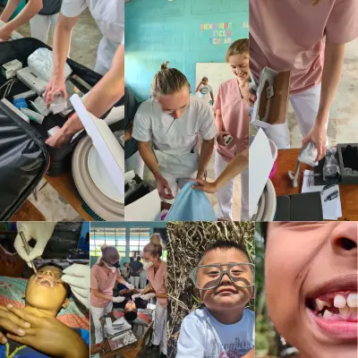 Nach 90 Minuten Fahrt über holprige Feldwege, kamen wir im Dorf an. Hier nennen wir das Aldeas. Uns empfingen wie üblich schon die ganze Gruppe der Menschen die auf die Zahnärzte gewartet hatten. Auch Irma. 16 kaum hatte sie schon massive Karries Probleme in den Frontzähnen. Irma war mit 16 Jahren im heiratsfähigen Alter. Auch sie wollte natürlich ihrem "Zukünftigen" mit einem selbstbewussten Lächeln entgegenzutreten. Doch ihre Zähne – besonders die vorderen – waren stark beschädigt und entstellt. Der Zahnarzt, der Irma untersuchte, schüttelte zuerst bedauernd den Kopf: Die Zähne sollten eigentlich entfernt werden.