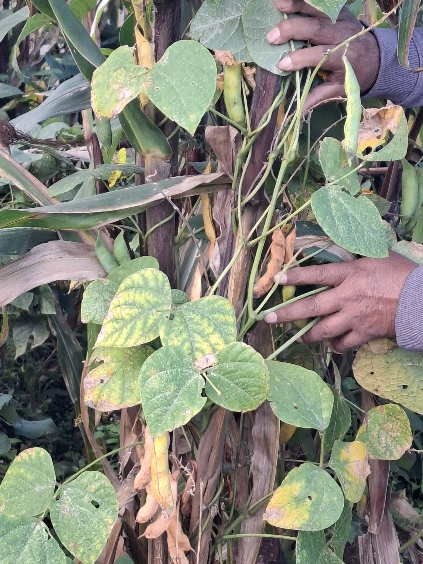 Die Kombination von Bohnen und Mais , eine Pflanzgemeinschaft, die in Nahrungswäldern und der Agroforstwirtschaft hat viele Vorteile