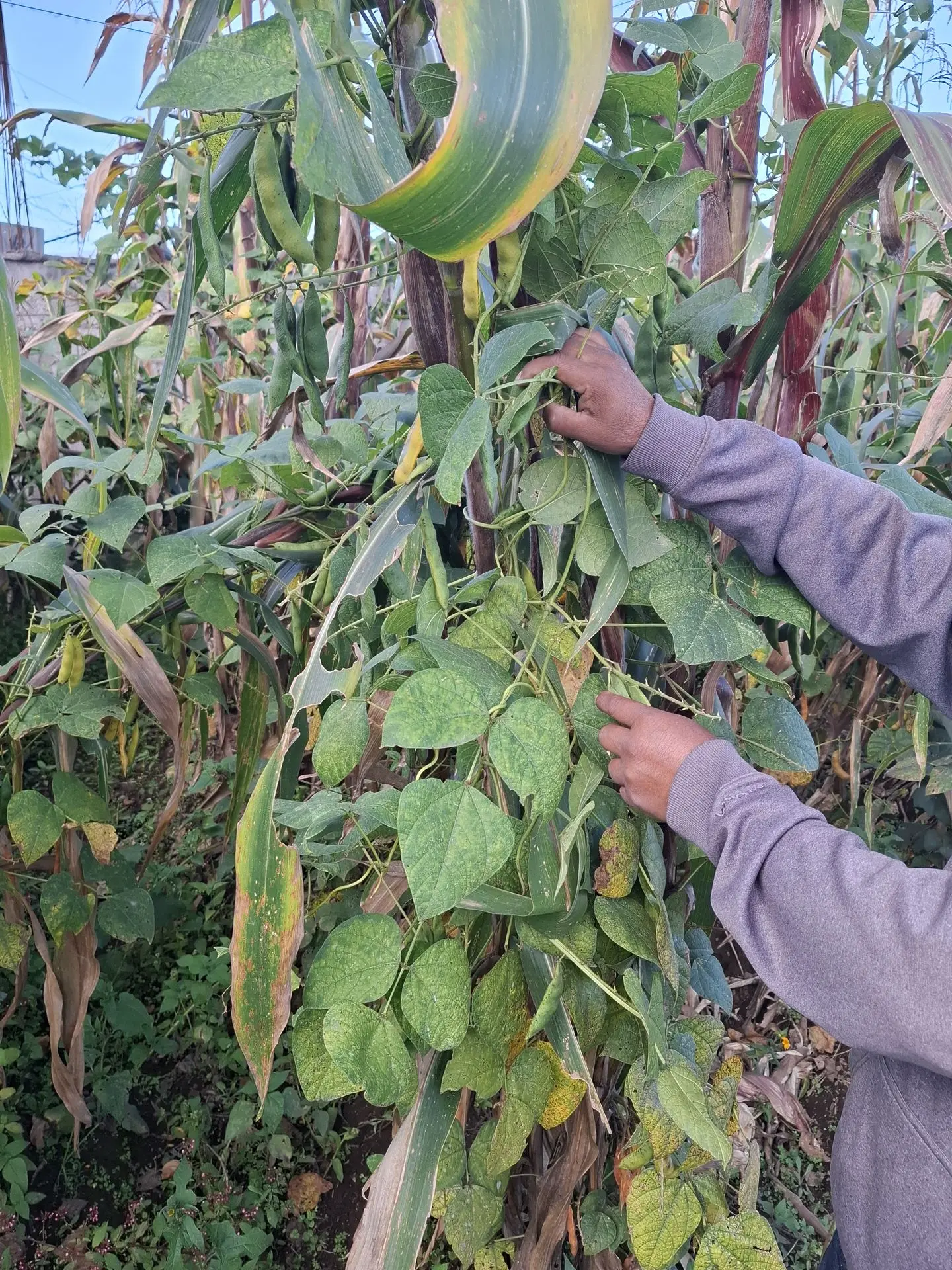 In unserem Nahrungswald ist die Kombination von Mais und Bohnen ein gutes Element für die Förderung der Biodiversität und die Schaffung eines widerstandsfähigen Ökosystems. Diese Pflanzenkombination hilft uns, die Bodenstruktur zu verbessern, die Nährstoffverfügbarkeit zu erhöhen und den Einsatz von synthetischen Düngemitteln zu reduzieren. Darüber hinaus tragen sie zur Diversifizierung unserer Ernte bei, was nicht nur das Risiko eines Ernteausfalls minimiert, sondern auch den Nahrungswert des Anbaugebiets steigert.